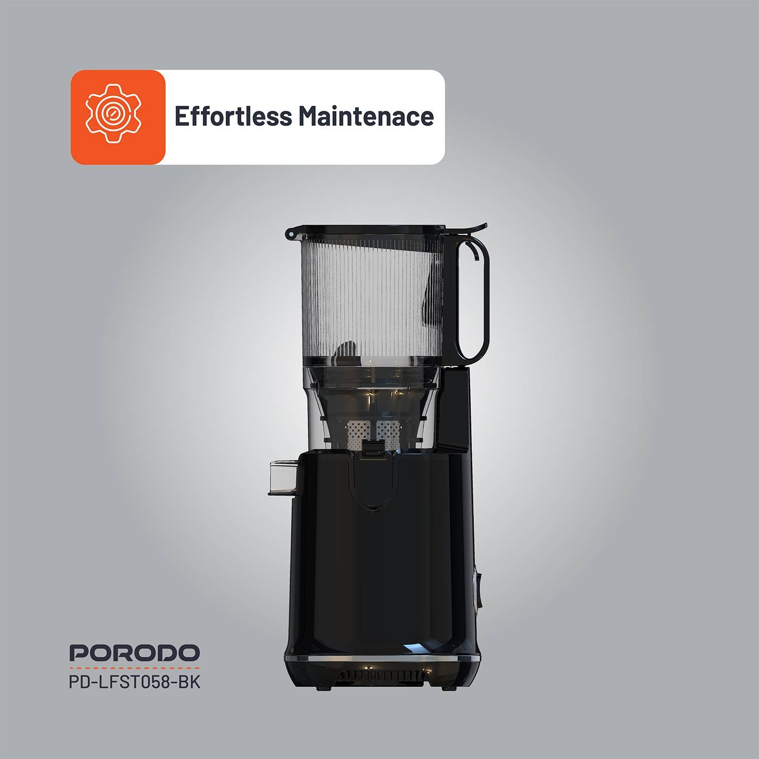 Porodo Lifestyle Cold Press Slow Juicer, 1.8L Hopper Capacity, Efficient Juice Extraction, Quiet 72dB Noise Level, Effortless Maintenance, 5.3" Wide F